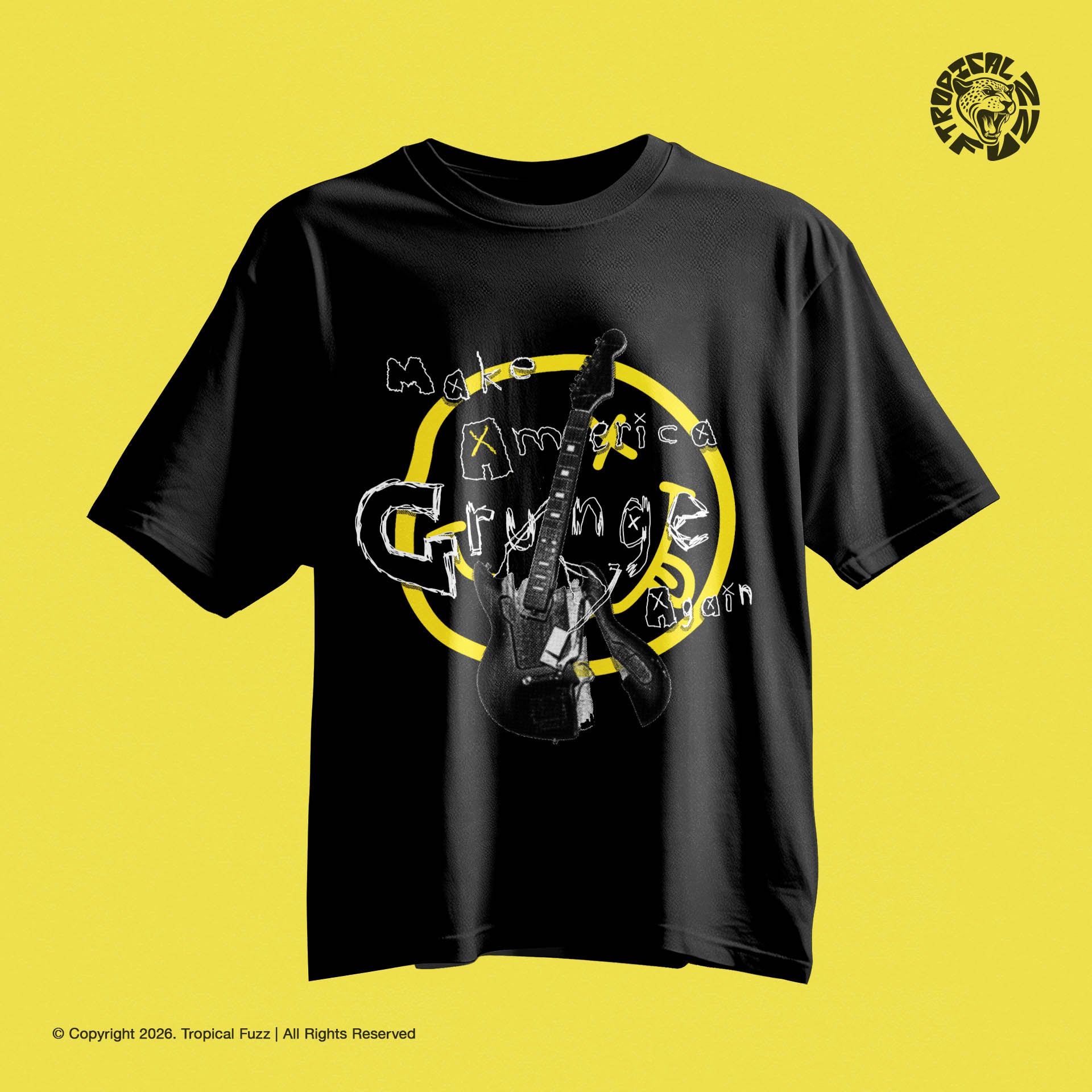 You can pair it with faded jeans, a beanie, and your favourite flannel shirt — the kind of piece that becomes part of a personal musical uniform. Let it live in the front row at basement shows, on weekend drives with the windows down, or layered under an open flannel when the night gets colder. The design reads as both a statement and a memory, inviting anyone who wears it to carry a small piece of grunge culture into everyday life.